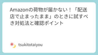 生活 Amazonの荷物が届かない!「配送店で止まったまま」のときに試すべき対処法と確認ポイント Amazonで注文した荷物のステータスが「配送店に到着しました」で止まったままだと、不安になりますよね。「もしかして紛失した?」「このまま届かないのかな?」と心配になる方も多いはずです。でも、実はこの状況は珍しくなく、原因を知って正しい手順... 生活