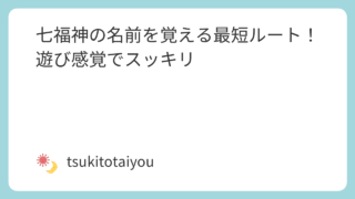 豆知識 七福神の名前を覚える最短ルート!遊び感覚でスッキリ 七福神は、日本の文化や歴史に深く根付いた存在で、幸運や繁栄をもたらす神様として知られています。お正月や初詣など、日常の行事でもよく登場するため名前を知っておくと会話も広がりますよね。しかし、七柱それぞれの名前や役割をしっかり覚えるのは意外と... 豆知識